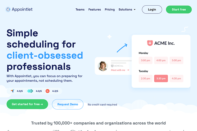 • Appointlet: Enables online appointment scheduling with custom booking pages.